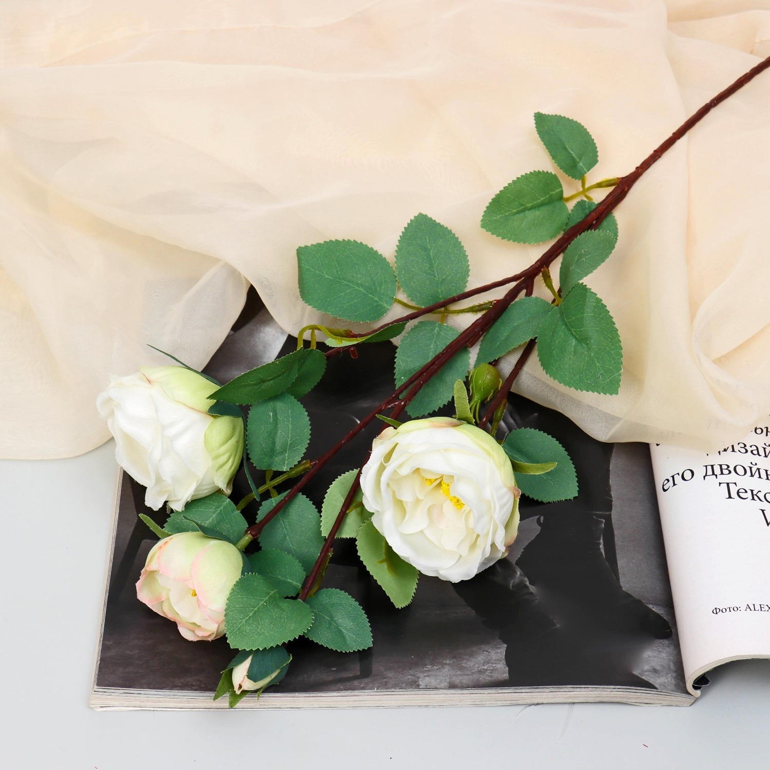 Цветы искусственные "Роза пионовидная галант" 7х61 см, белый 9222751