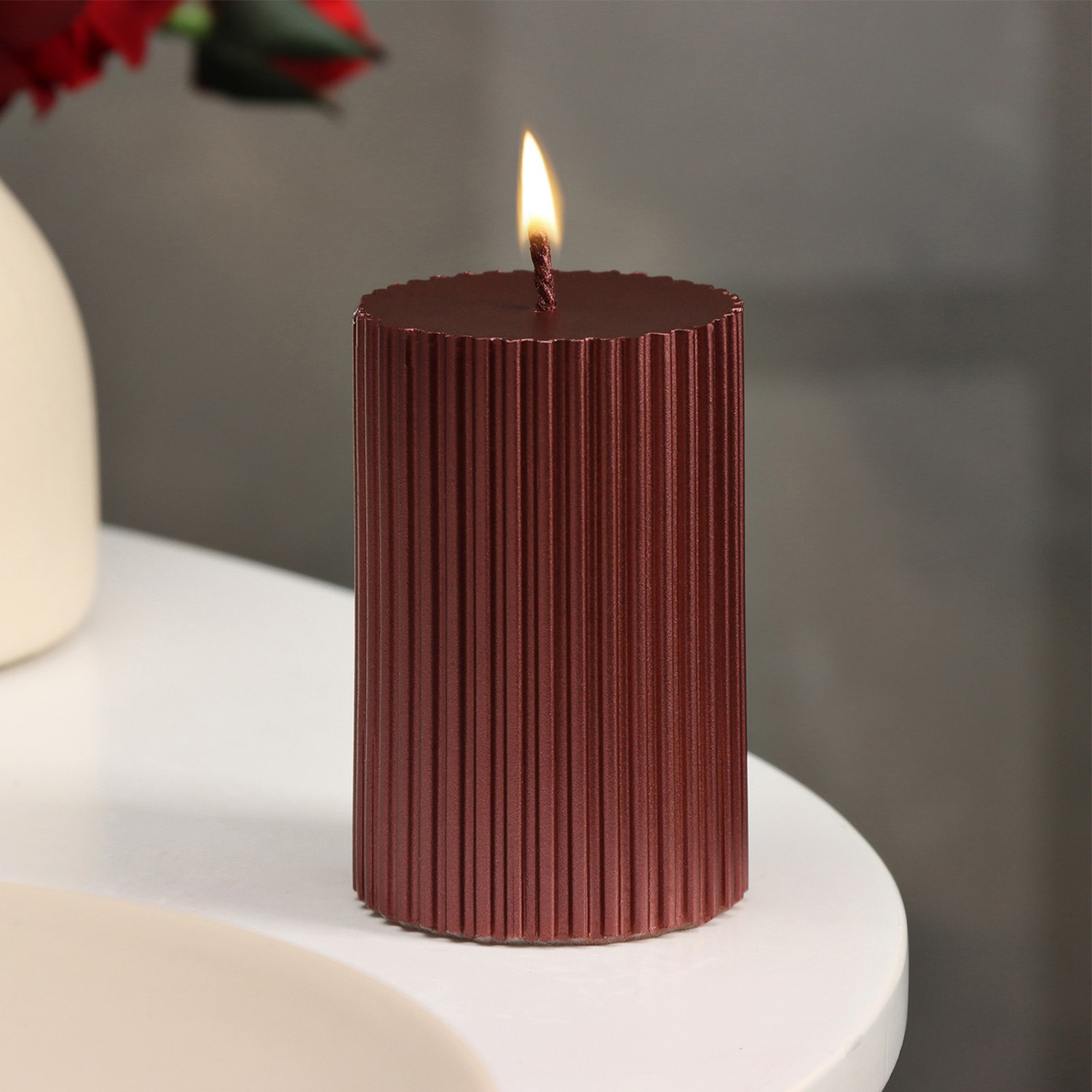 Свеча-цилиндр с гранями, 5х7,5 см, пальмовый воск, винный металлик, 6 ч 9889541