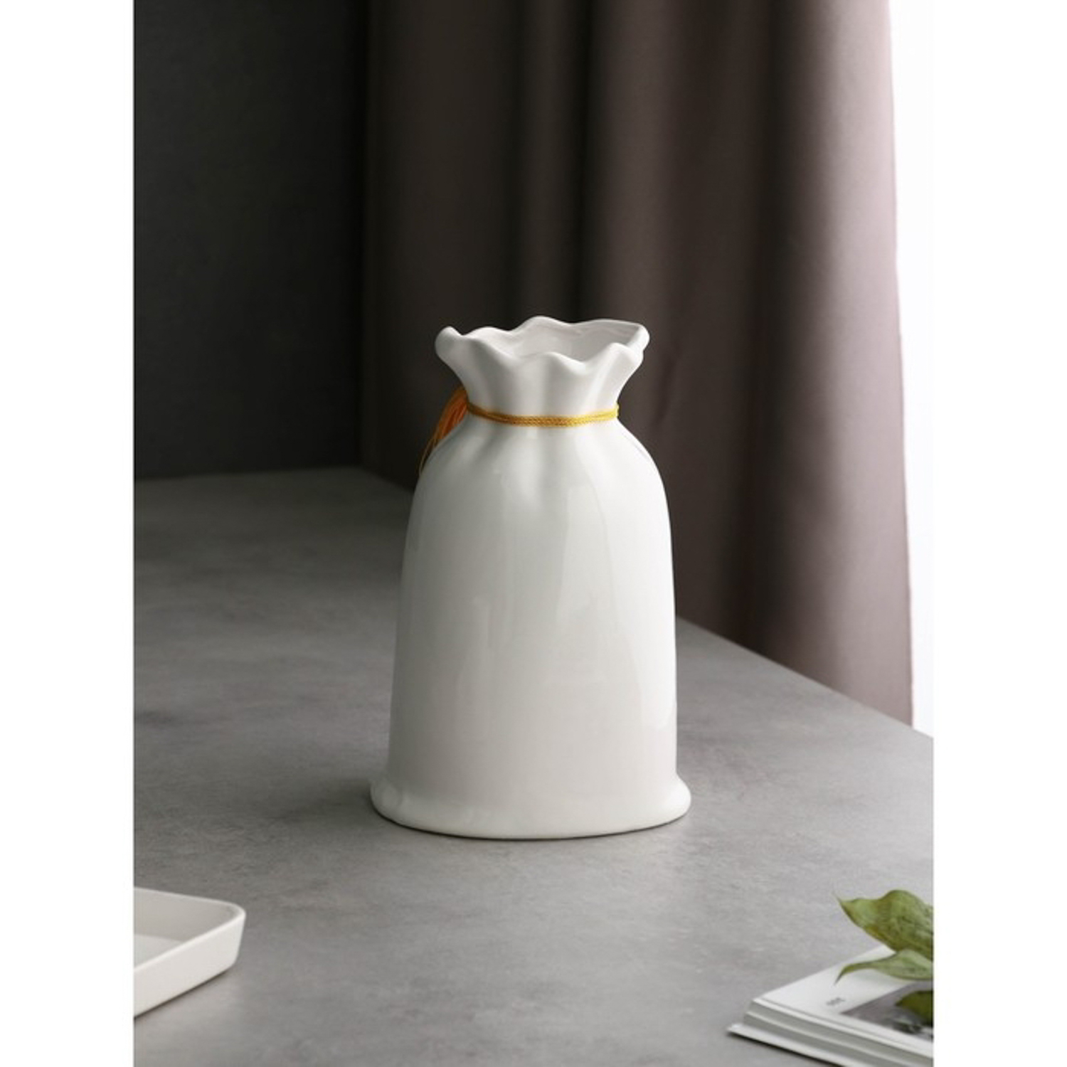 Ваза настольная «Мешочек», h=21 см, цвет белый, керамика, 1 сорт, Иран