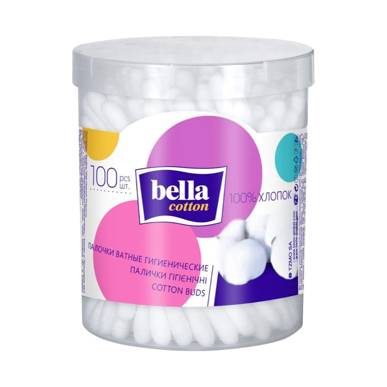 яяяВата на/палочках Белла СТ 100шт.пластик/уп/круглые.Мед.