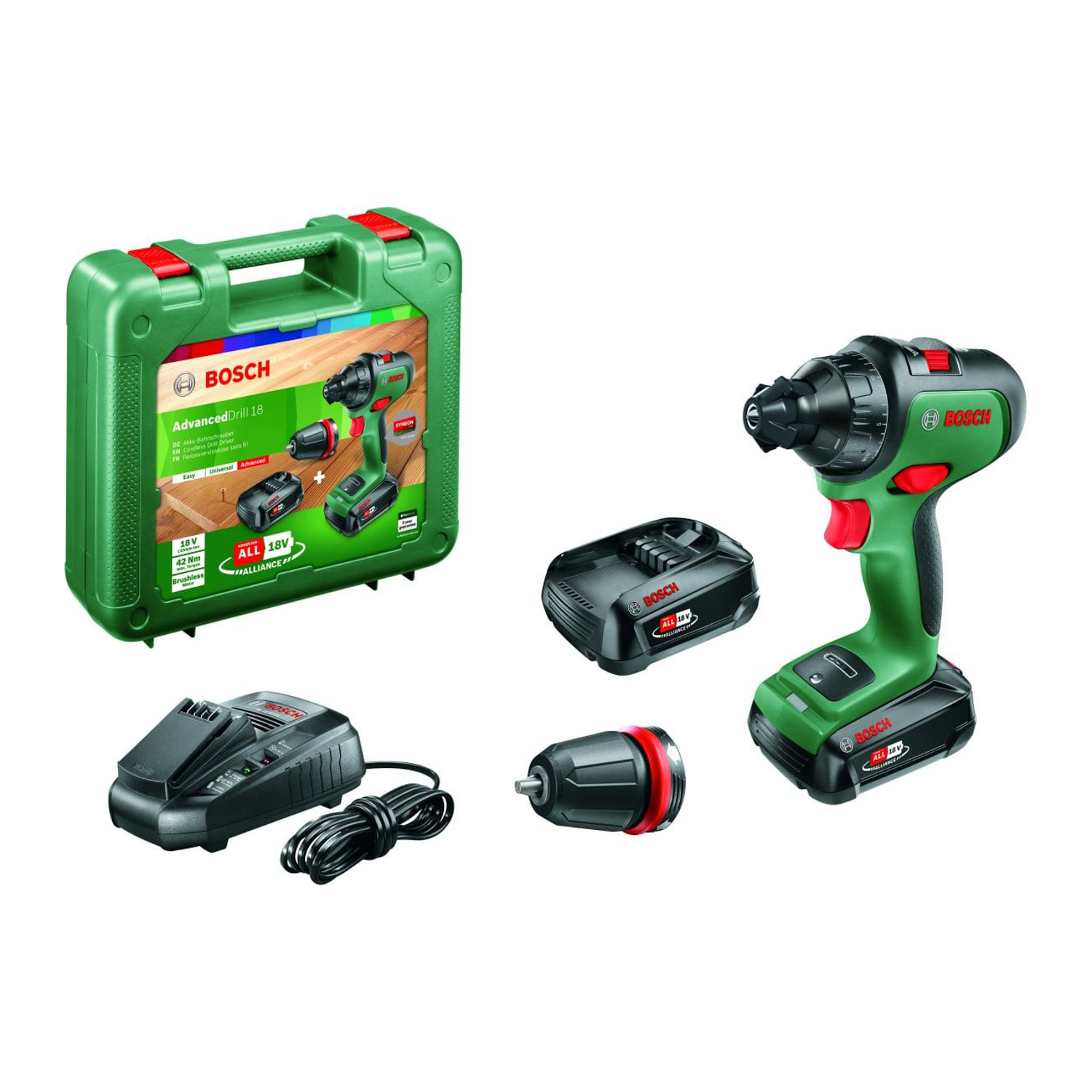 Дрель-шуруповерт 18В 2скор.0-430/0-1350об/мин 36Нм 2,5Ач (без АКБ/ЗУ) LI-IONAdvancedDrill18 BOSCH *1