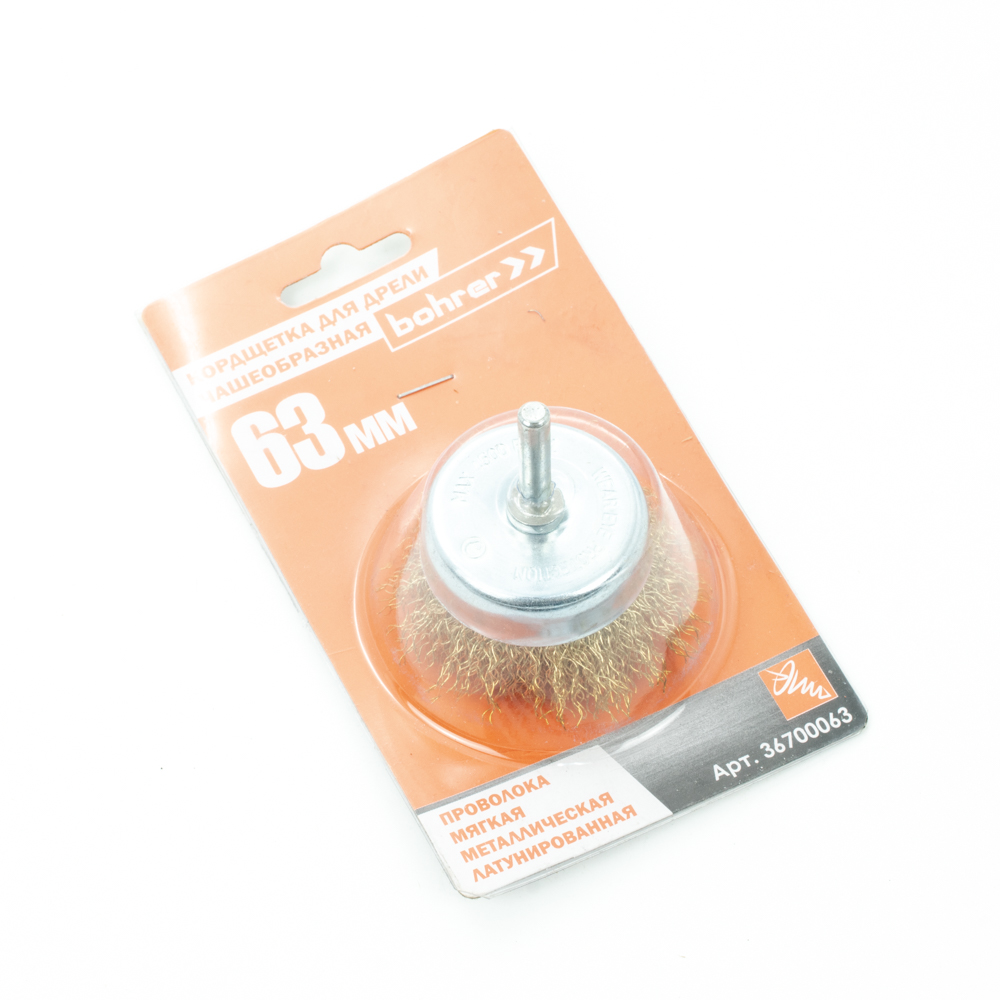 Щетка-крацовка "чаша" латунирован.круч.провол. 63мм 0,3мм для дрели арт.36700063 Bohrer *1/10/120