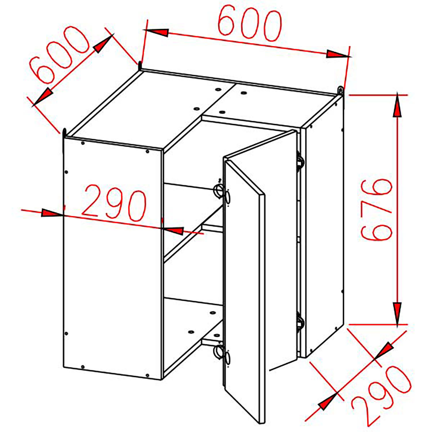 Шкаф навесной угловой 600х600 мм BROZEX-WOOD Viola, с двумя дверцами, белый