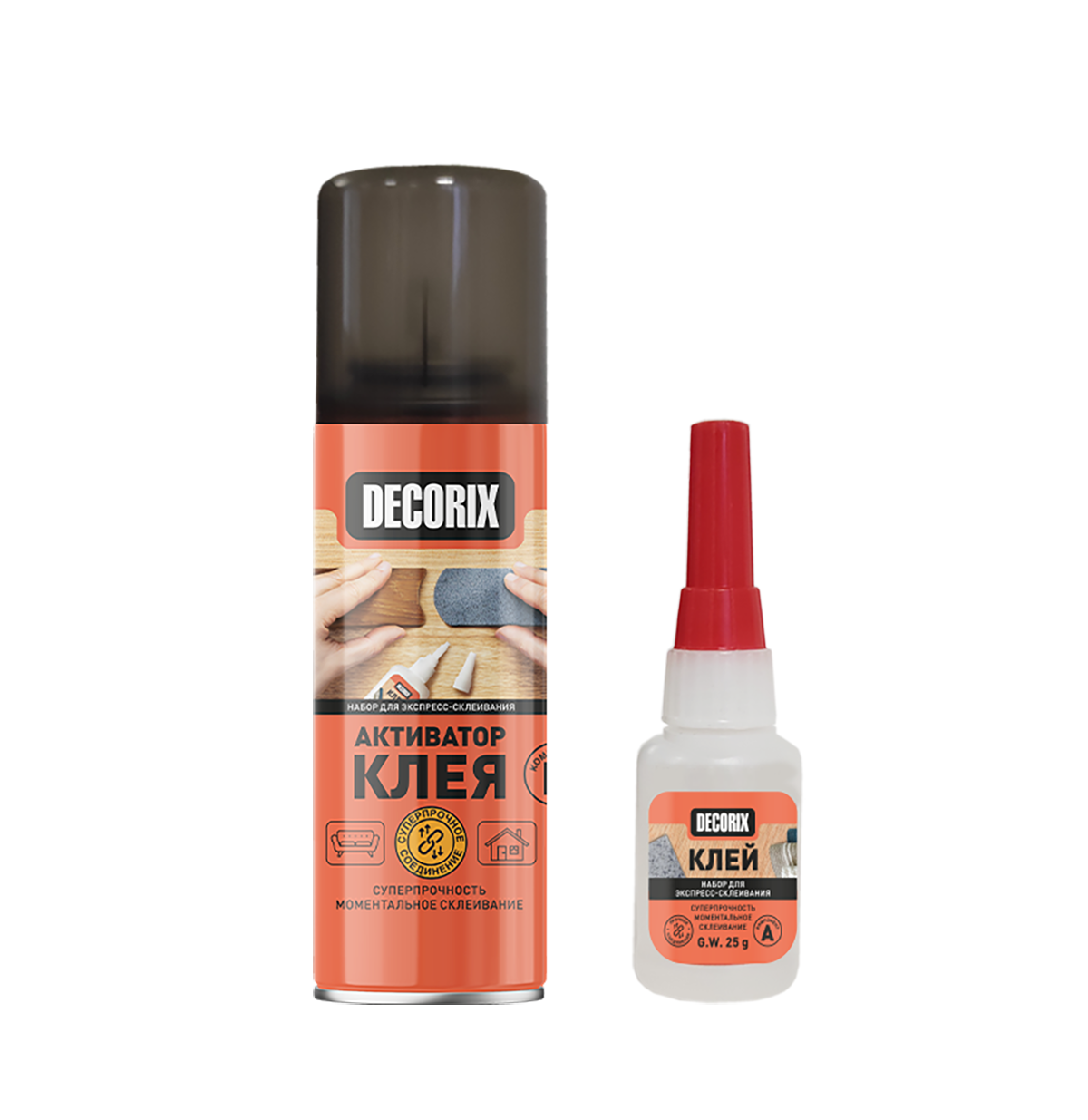 Клей двухкомпонентный для экспресс-склеивания DECORIX (активатор 140 мл+клей 25 г) *1/72