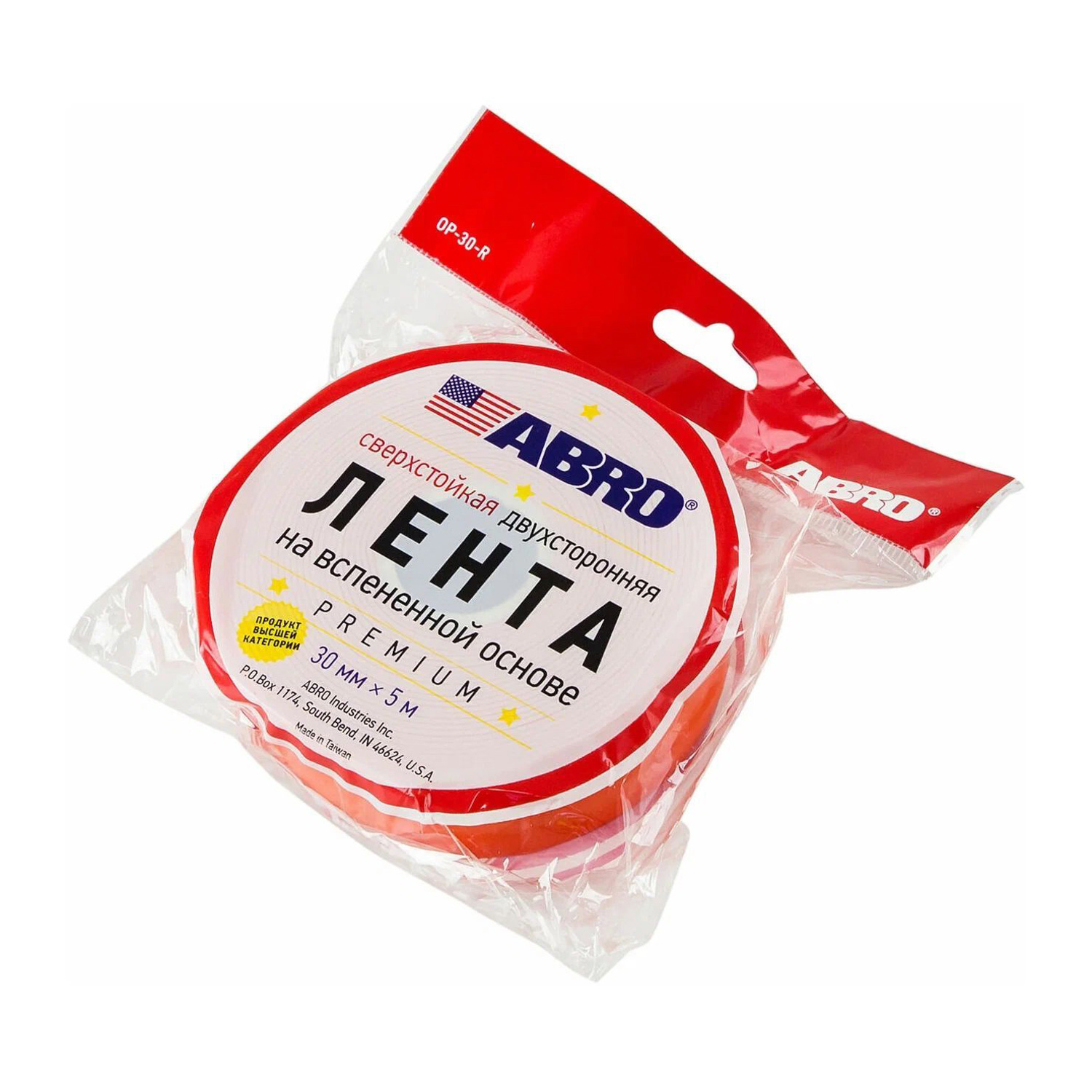 Лента клейкая двусторонняя на вспененной основе Термост. Белая 30мм х5м OE-30-R "ABRO" *1/275