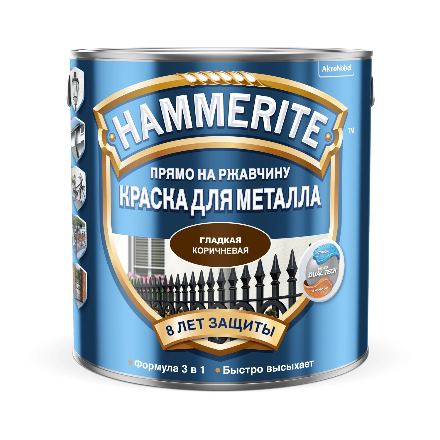 Краска по металлу коричневая гладкая 0,75 л Hammerite *1/6