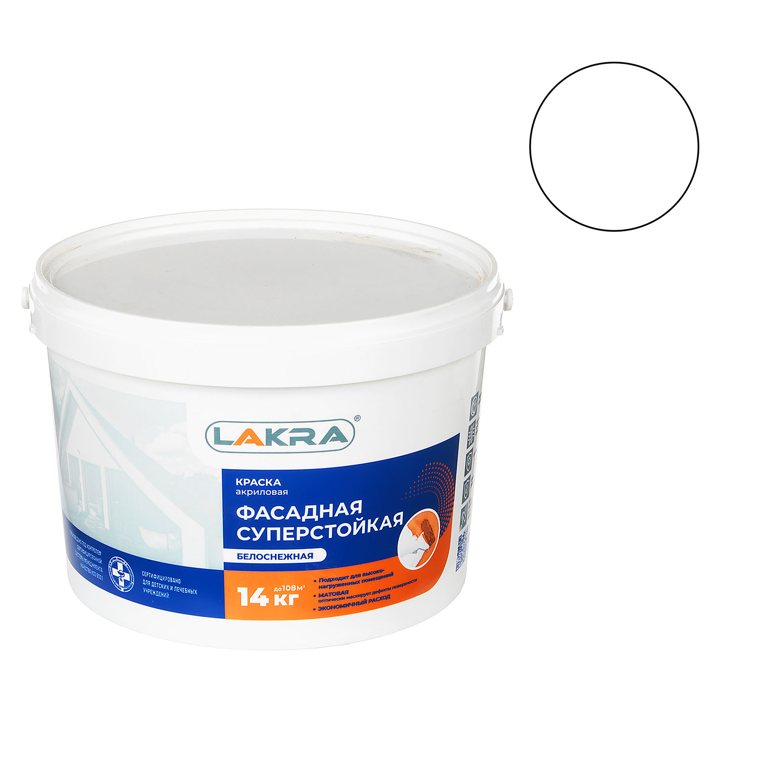 Краска акриловая 14 кг фасадная ЛАКРА, суперстойкая