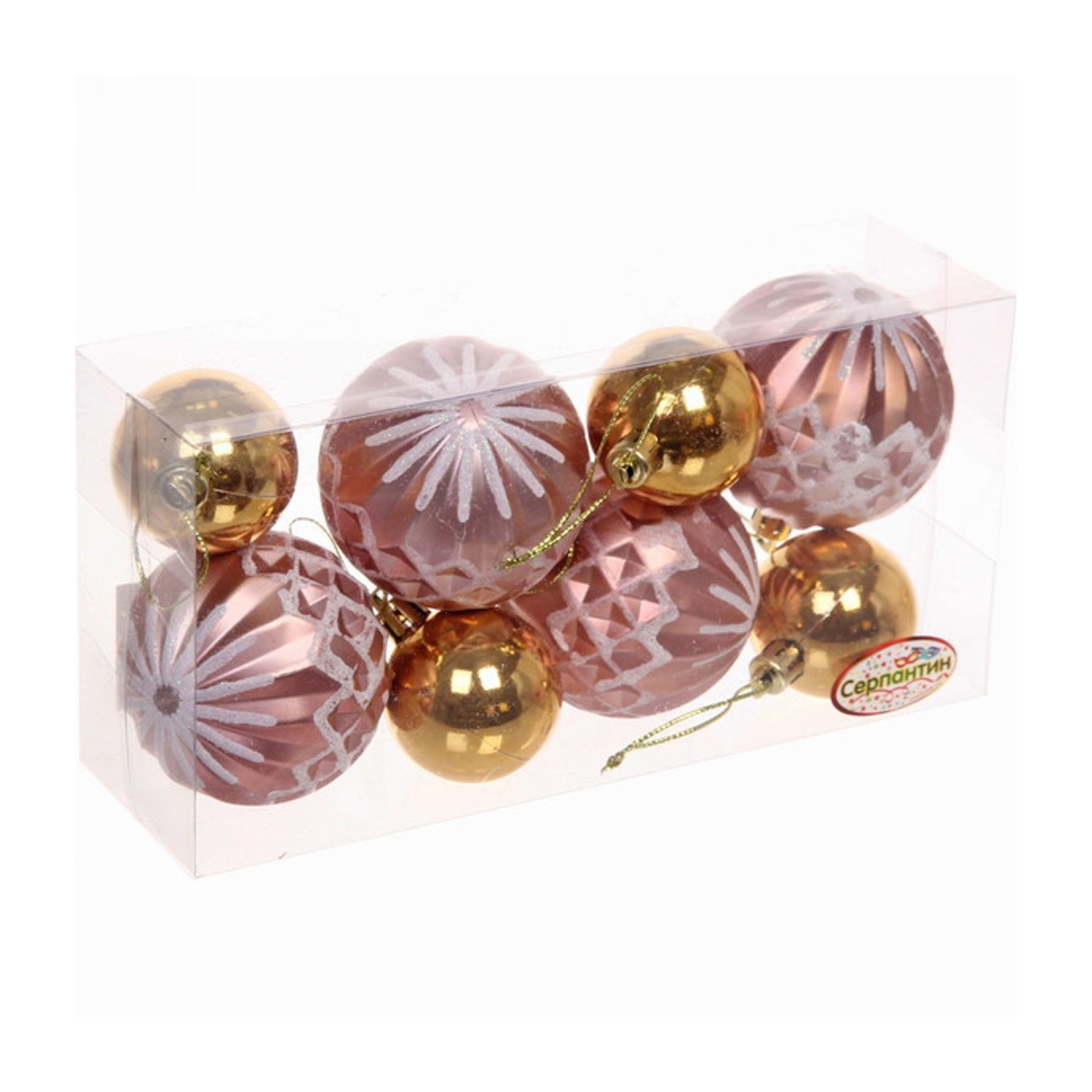 Новогодние шары 6/4 см (набор 8 шт) "Яркий восторг", Шампань