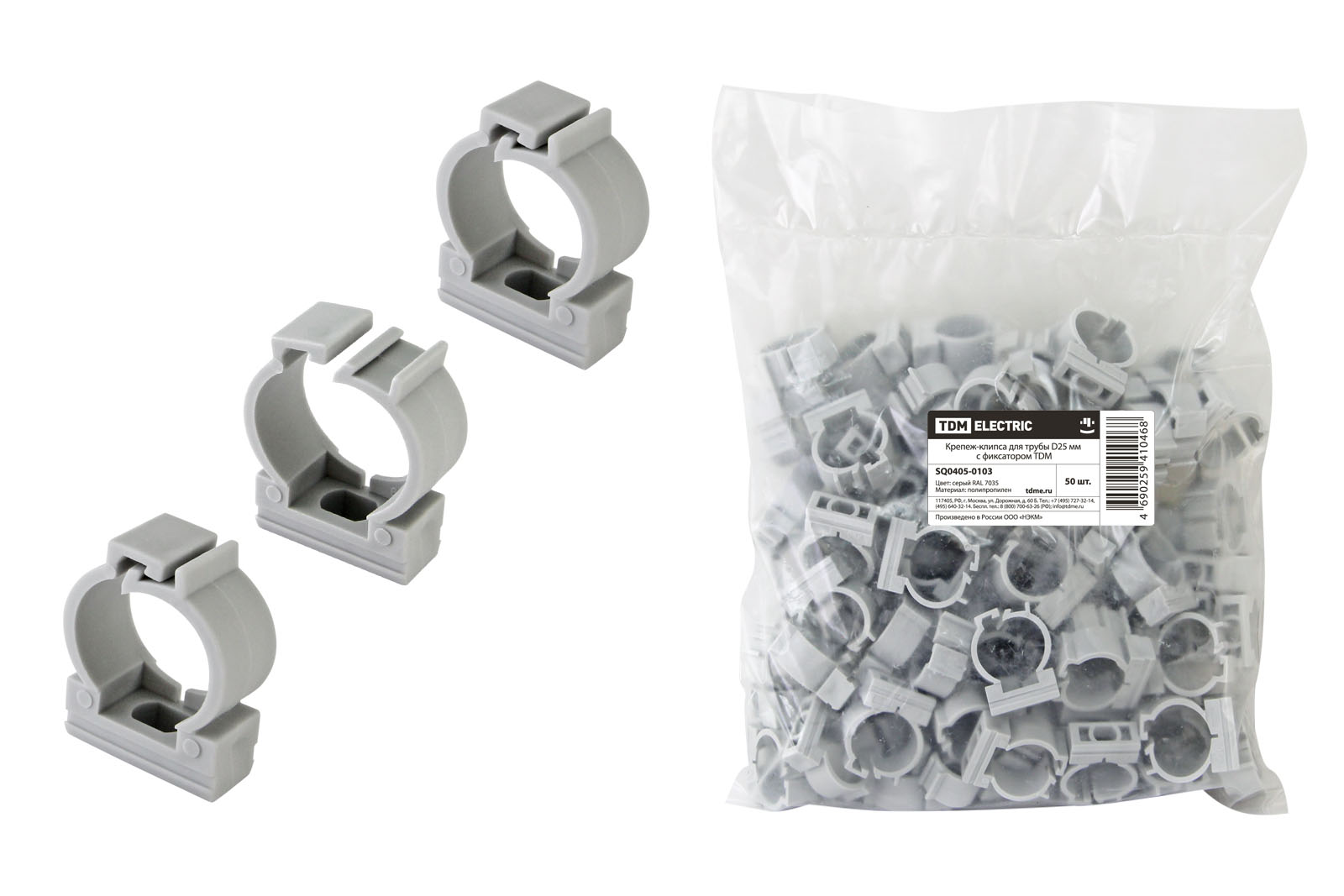 Крепеж-клипса d25мм (для трубы пвх гофро с зонд) с фиксатором упак.50шт TDM  SQ0405-0103 *1/10/40