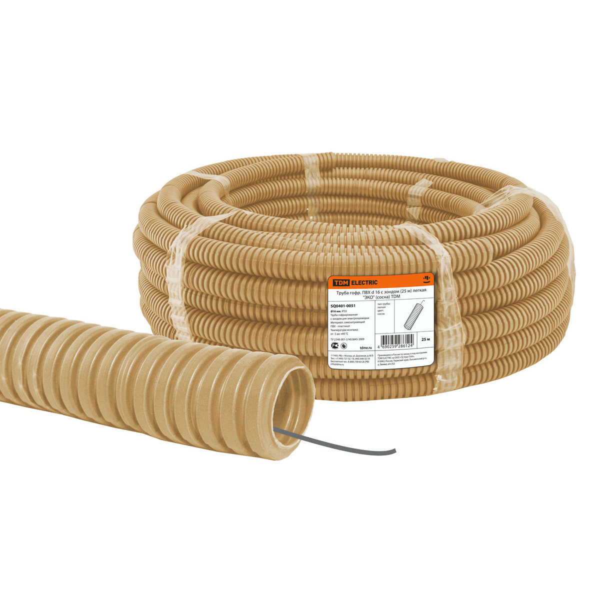 Труба ПВХ гофро с зонд. d20мм(25м) "Эко" СОСНА TDM SQ0401-0052 *1