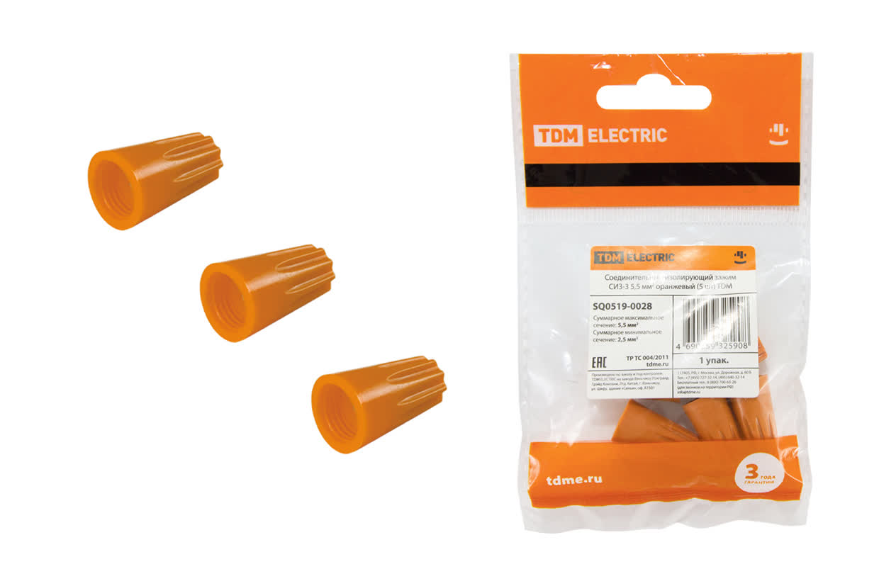 Зажим изолирующий СИЗ-3 5,5мм2 оранжевый (5шт) TDM SQ0519-0028 *1/200