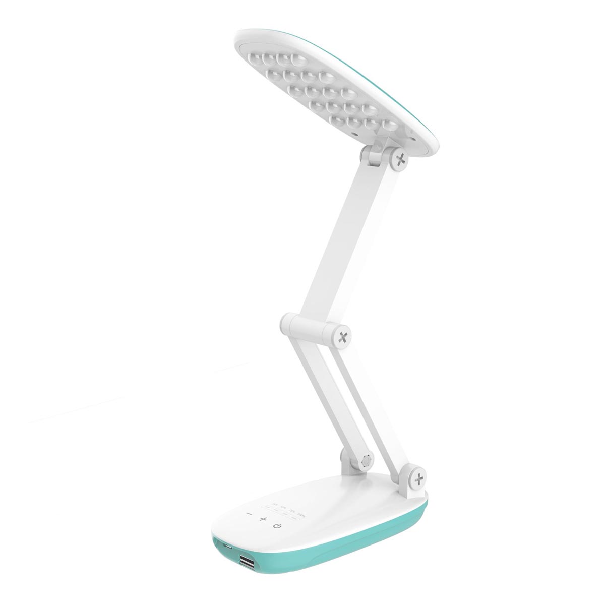 СТАРТ СТ82 — настольный светильник, который станет полезным помощником для школьников в выполнении домашних заданий и занятий творчеством. Это компактная лампа, отличающаяся современным простым дизайном и эффектной складывающейся конструкцией. Настольная лампа является автономным источником света и использует питание от встроенного аккумулятора емкостью 2200 мА*ч. При подключении электрического кабеля питание светильника переключается на сетевое, с параллельной подзарядкой аккумуляторной батареи. В основании размещен USB-разъем, позволяющий заряжать портативные устройства. Для удобства использования настольная лампа укомплектована регулятором освещенности, позволяя управлять силой светового потока. Светильник имеет подвижную конструкцию, позволяющую регулировать направление светового потока. В сложенном состоянии светильник значительно экономит рабочее пространство на столе. Секции стойки оснащены винтовыми фиксаторами для сохранения выбранного положения светильника над рабочей поверхностью. Элемент освещения состоит из 20 светодиодов суммарной мощностью 4Вт. Срок службы светодиодов — 30 000 часов непрерывного горения. Корпус выполнен из экологически чистых материалов, простота конструкции обеспечивает долговечность и безопасность использования светильника. Светодиоды защищены от перегрева и перепадов напряжения. Элементы светильника надежно защищены и ограничивают возможность поражения электрическим током в процессе использования.