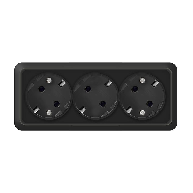 Розетка "Олимп" ОП 3-мест. черный с/з 16А IP20 UNIVersal 2218 *10/80