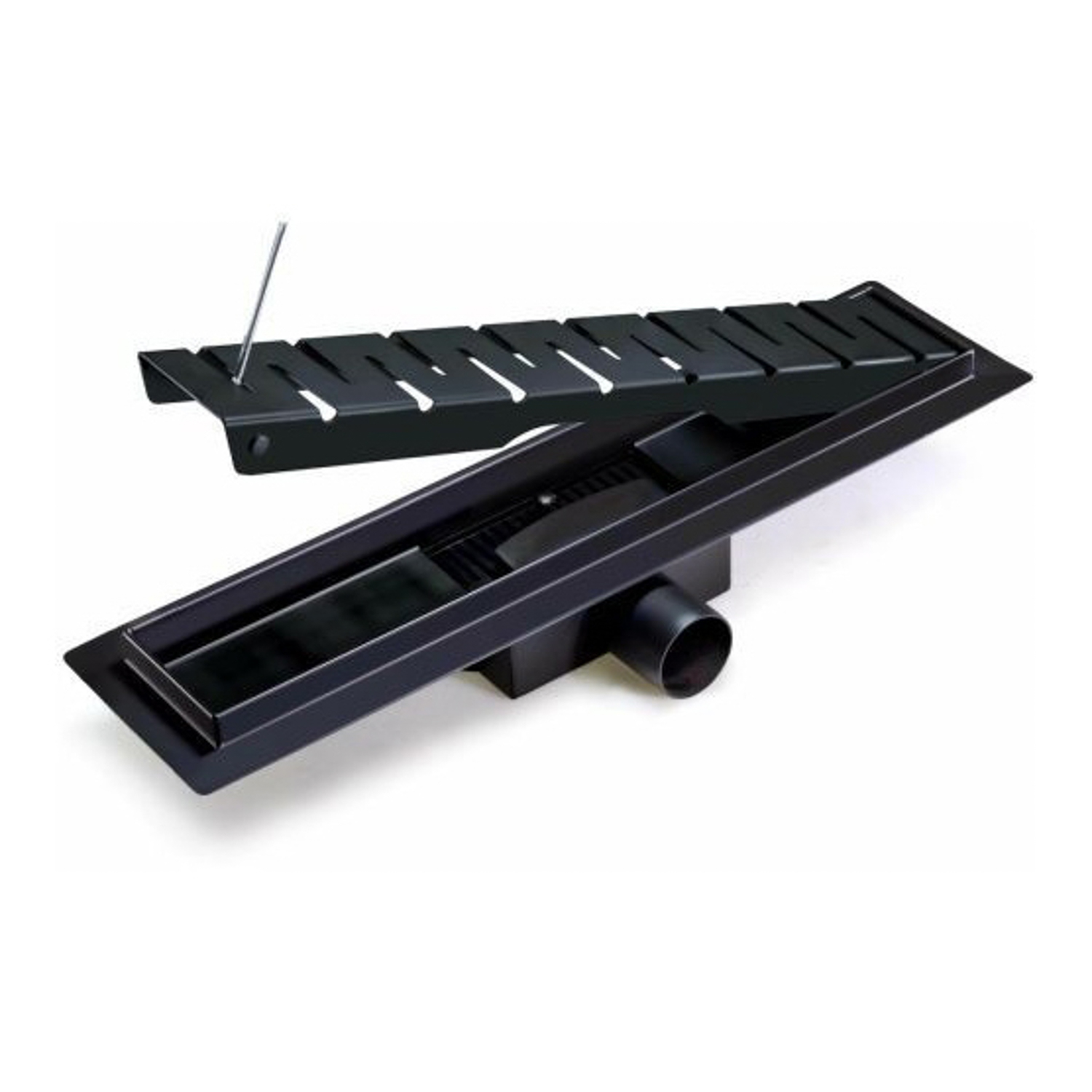 Желоб 500х70 мм, гориз. выпуск, сухой затвор TIM BAD465002BK черный мат. (1/4)	*1