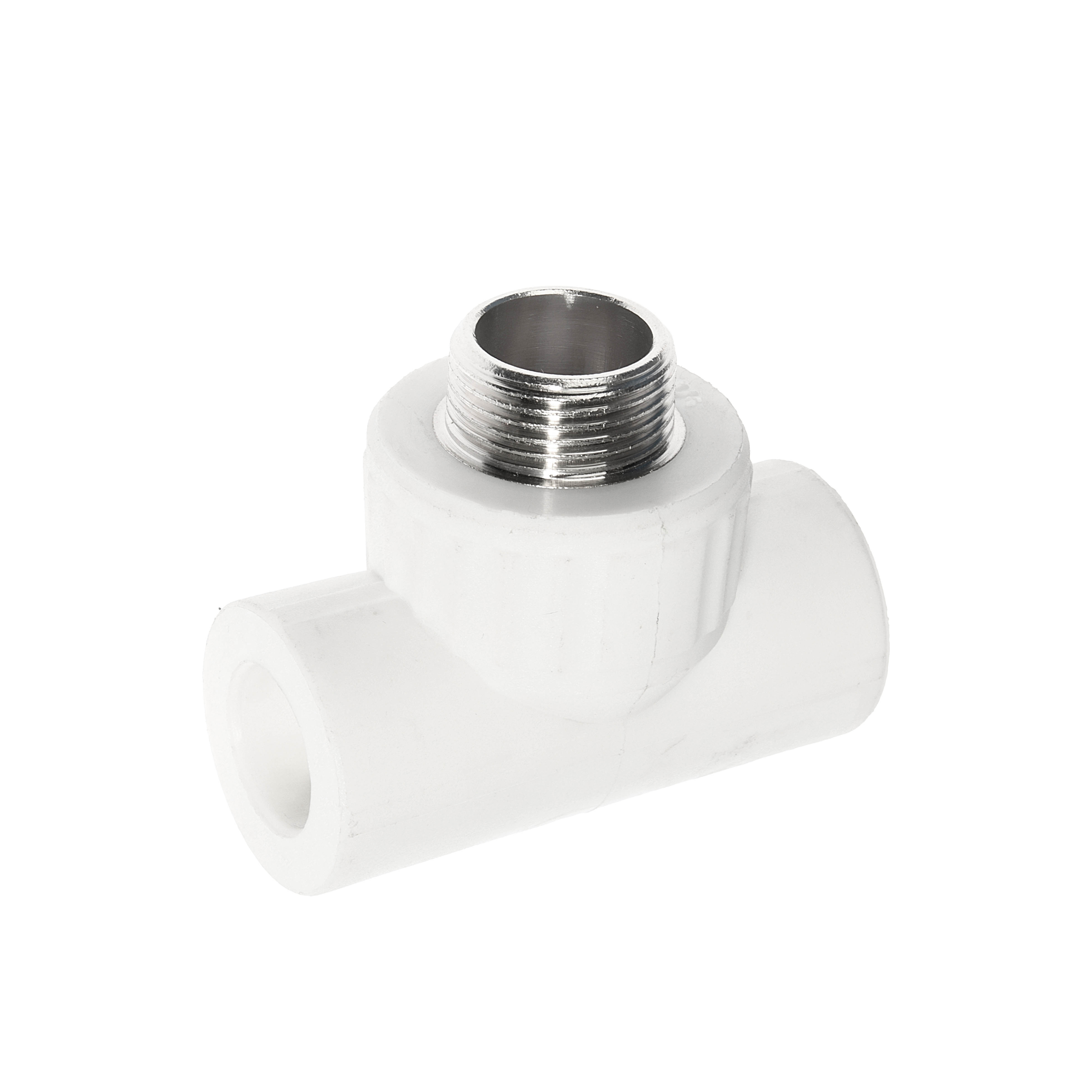 Тройник комбинированный – соединительный элемент комбинированного типа, используемый при создании систем отопления и водоснабжения для развилки труб и организации источников водопотребления. Изготавливается из полипропилена, имеет железную закладку с наружной резьбой для подключения сантехнических приборов и труб. Боковые отверстия предназначены для соединения с трубой посредством сварки.
