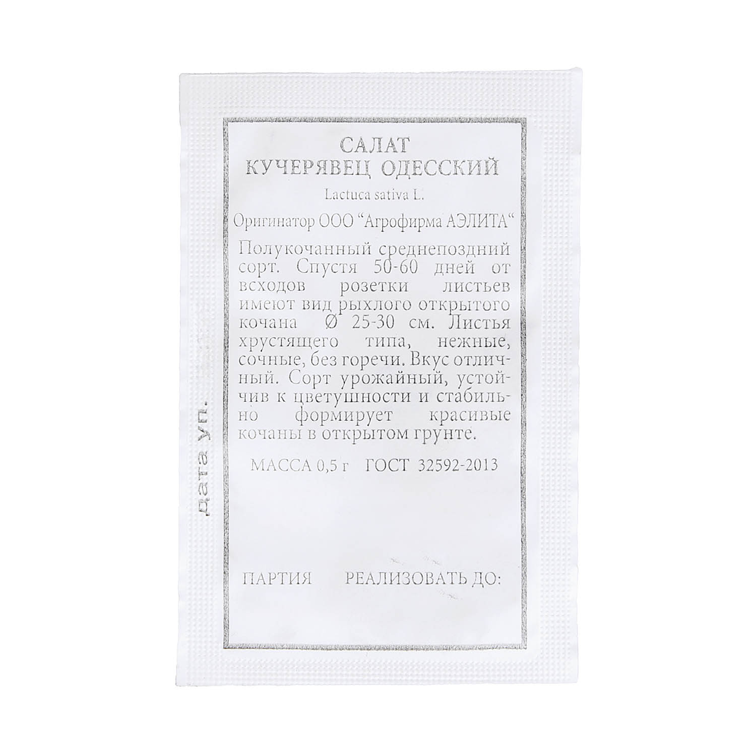 Семена Салат Кучерявец Одесский, полукочанный 0,5гр Аэлита БЕЛ *20/500