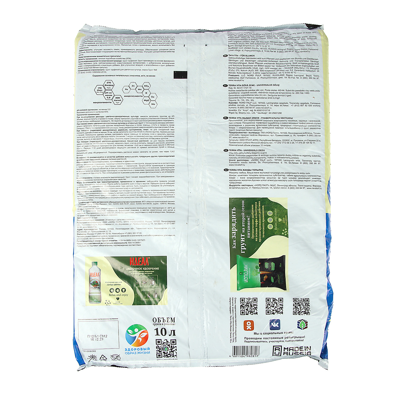 Почвогрунт 10 л «Цветочный» Terra Vita
