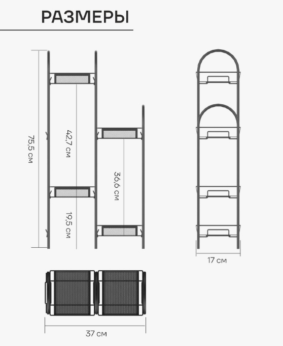 Этажерка для цвет.кашпо металл. "Лира 24" 4-х местн., ш.0,37м,в.0,75м,гл.0,17м Черный ПДЦЛ24Ч *1
