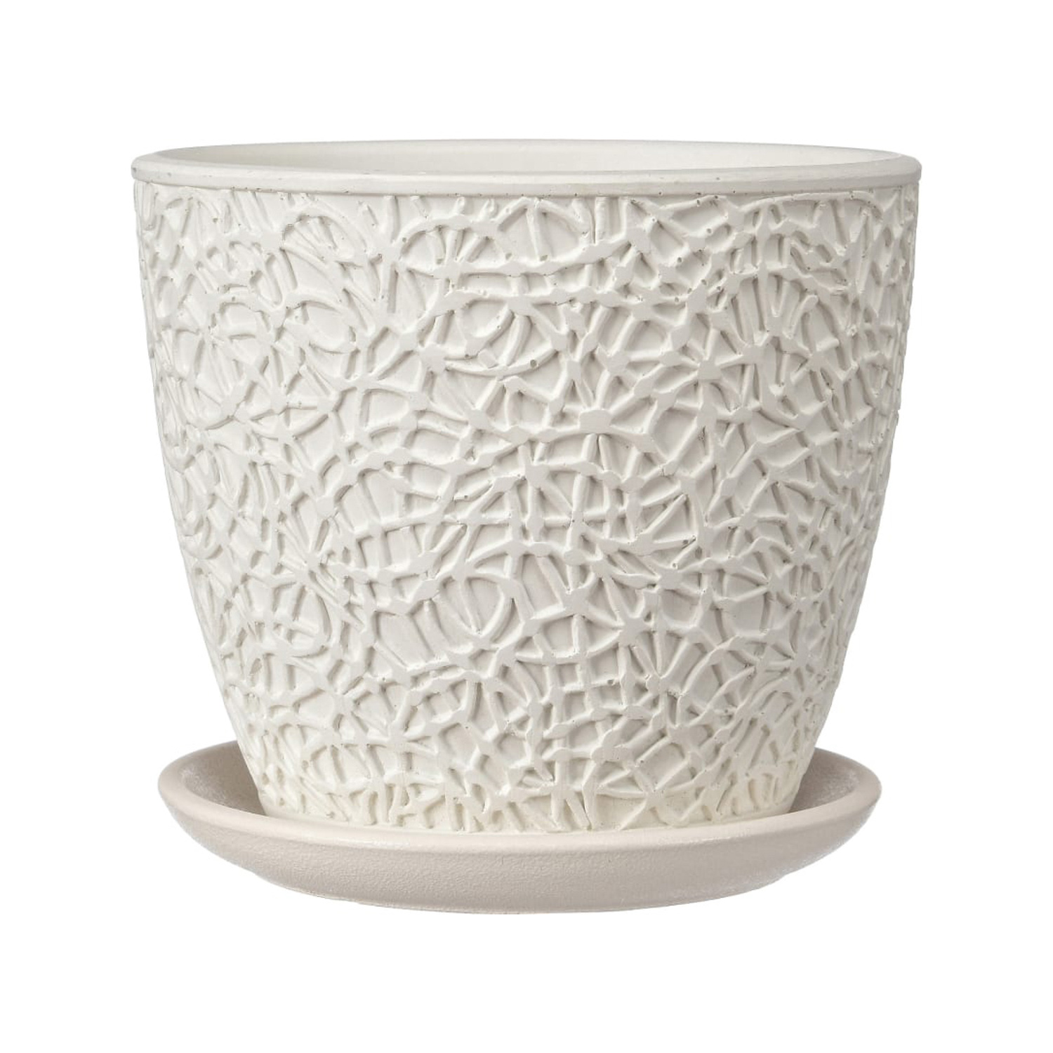 Кашпо бетон "Бутон" "Паутинка" 4л d верха 206мм h182мм с поддоном Белый №4 КБ-Б4-178-03 *4