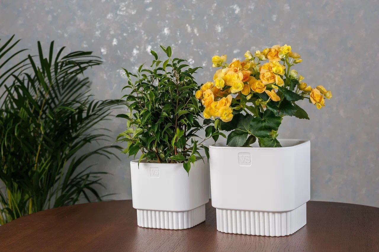 Кашпо пластм. "Бостон" 5,5л 192х192мм h185мм со вставкой Белый АМБ-5,5-01 ("VipSet") *1/6