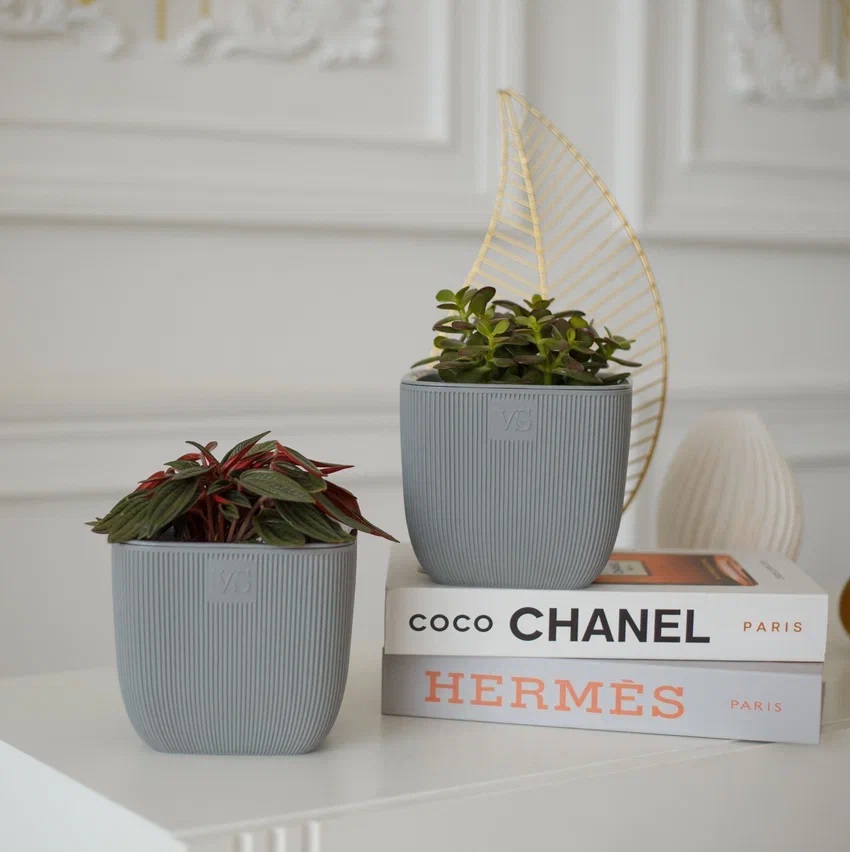 Кашпо пластм. "Фабио" 1,95л 140х140мм h140мм со вставкой Серый AMF-1,95-03 ("VipSet") *1/8