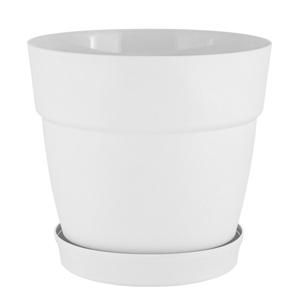Кашпо пластм. "Villa de Fiori" 26л d верха 380мм h358мм с поддоном Колёса Белоснеж. IG660510048 *1