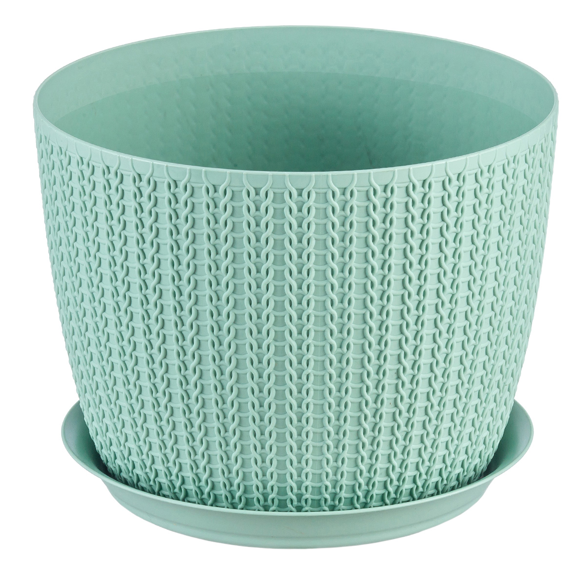 Кашпо пластм. "Вязание" 2,8л д.180мм с поддоном Фисташковый М3121 ("М-Пластика") *1/12