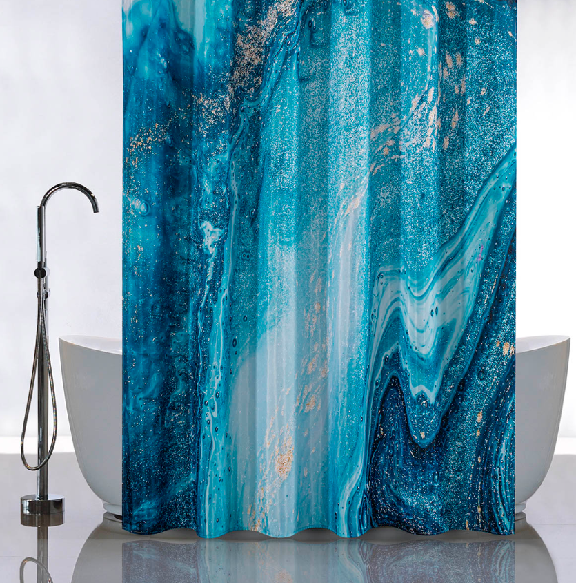 Штора для ванной "Санакс" п/эстер 180*180см "Бирюзовый мрамор" без колец 01-79 *1/24