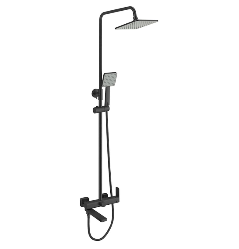 Смеситель д/ванны со стойкой для душа + ручной и тропический душ Fmark FS8745-22H черный *1
