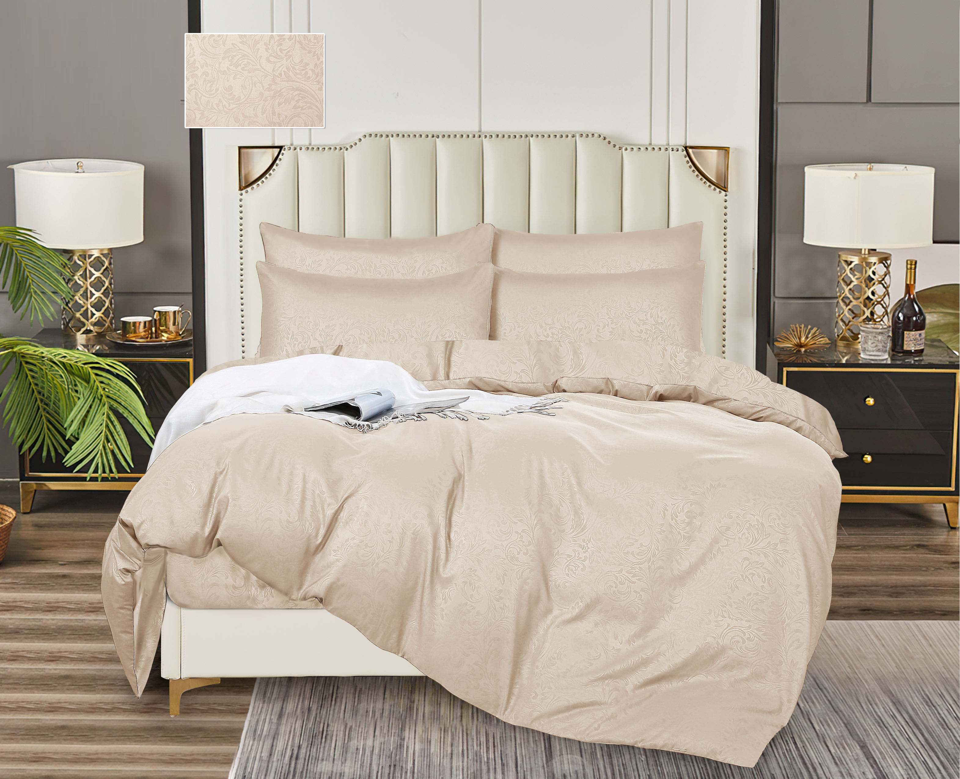 Постельное белье 2сп бамбук жаккрад Орхидея крем 11-0605, наволочки 70*70см - 2шт *1