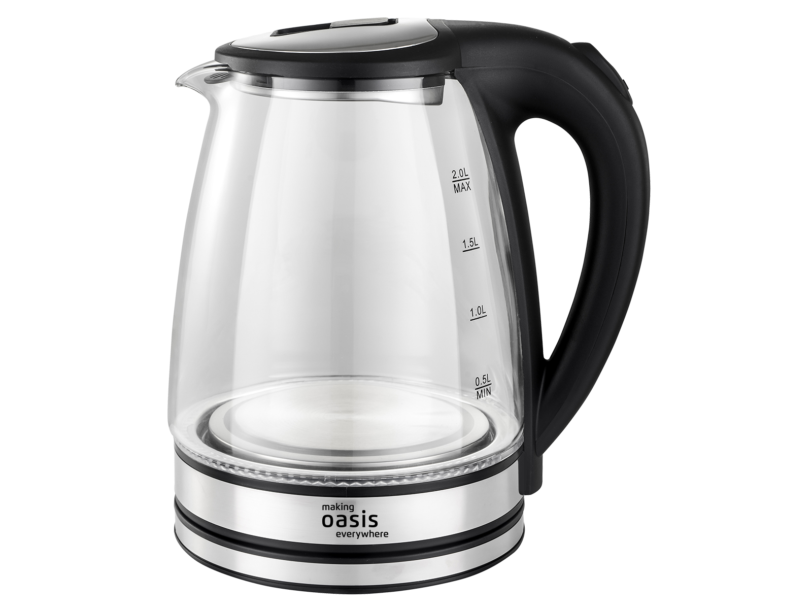Чайник электрический стекло 2,0л 2000Вт Oasis K-8GS черный, автооткл, LED подсветка *1/12