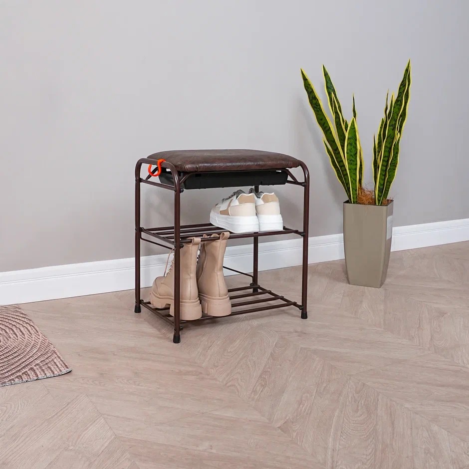 Этажерка "обувница" металл. "Альфа 13ся" 2полки+мягк.Сиднье.с ящик,ш.0,45м,в.048м Кор.ПДОА13СЯ КОР*1