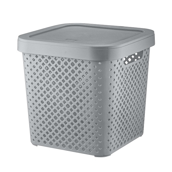 Корзина для хранения пластм. "Stockholm" 310х310х300мм с Крышкой Серый шторм PT500801025 *1/8