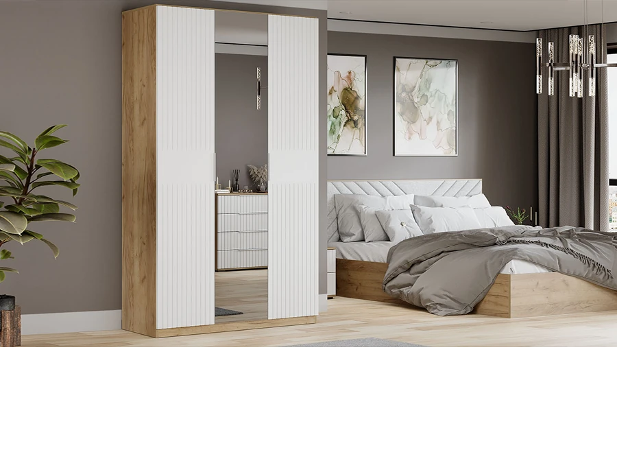 Шкаф трехстворчитый Исп.2 Дуб Крафт золотой/белый матовый Хилтон*1