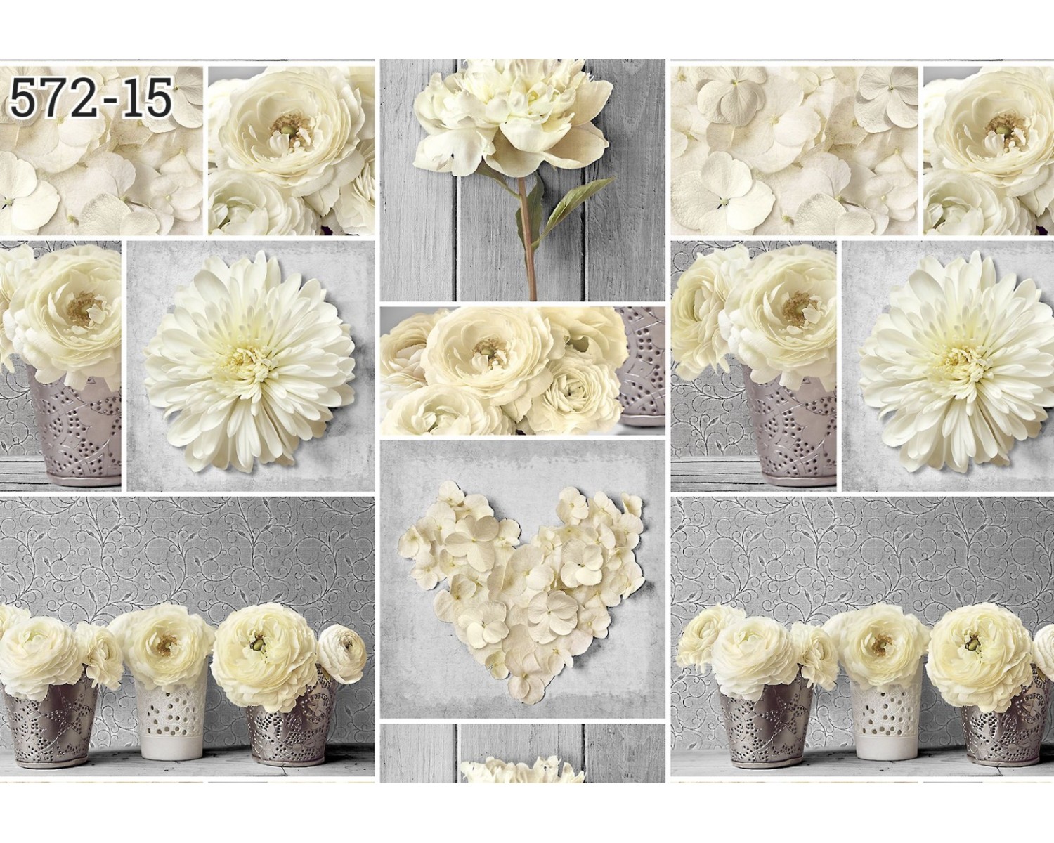 Клеёнка на нетканой основе "Мажор" "Коллаж: кремов. цветы" на св.сер. шир.1,35м 572/15 "Колорит" *20