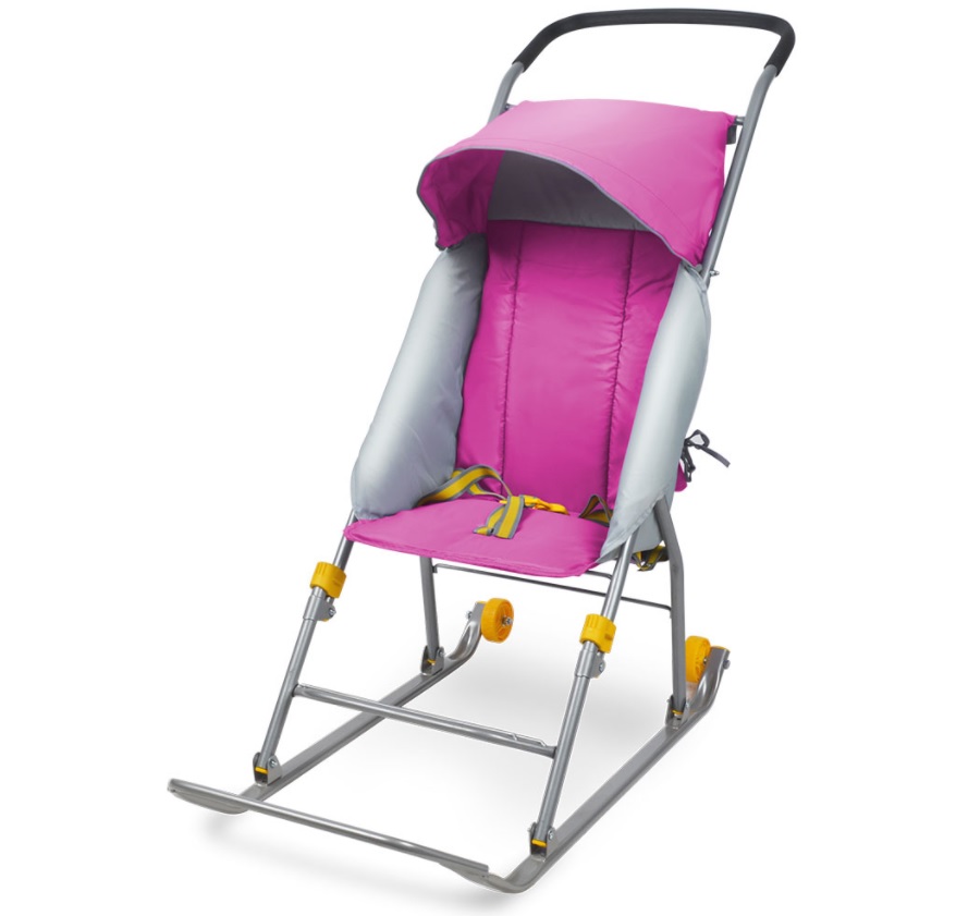 яяяСанки-коляска детские "Умка 1 комфорт" выс.сид.+коз.,плоск.полозья с колес. Розов. У1К (Иж.)*1/2