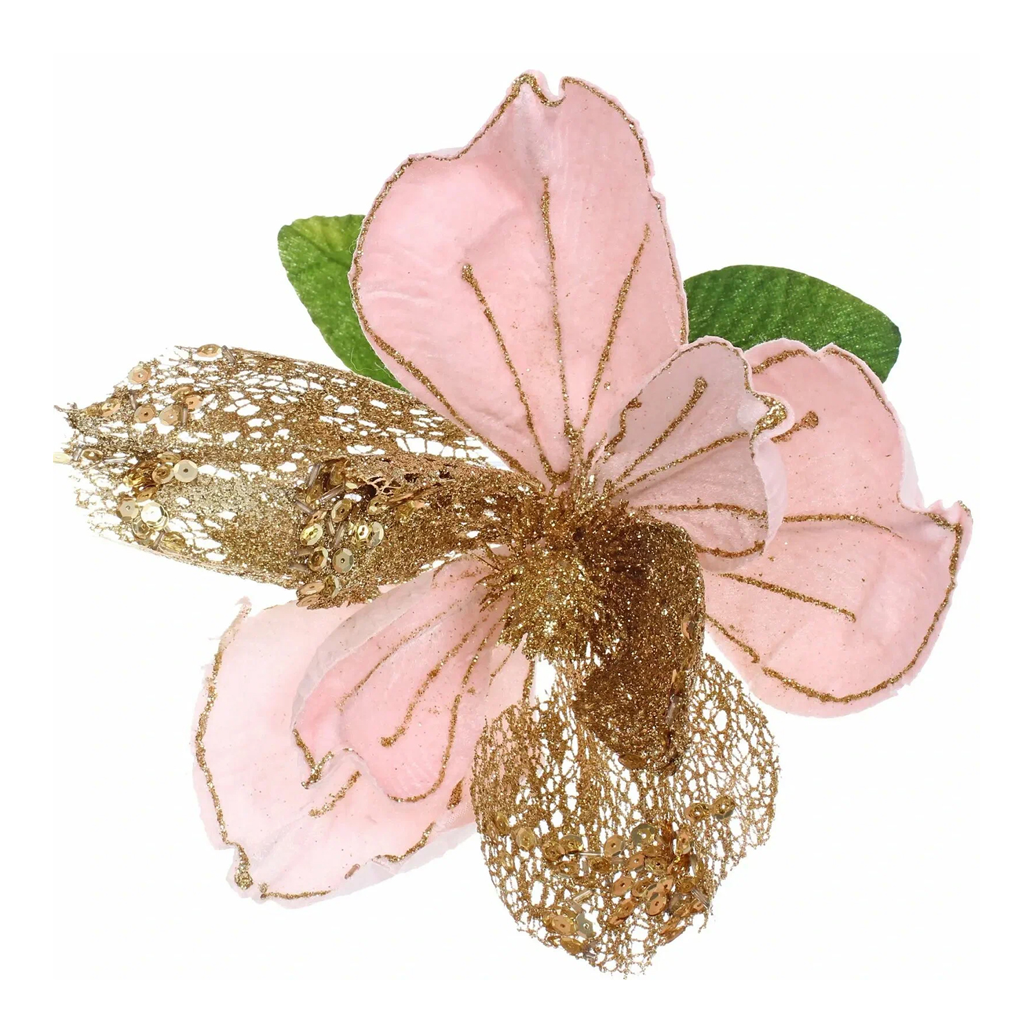 Украшение новогоднее "Пуансеттия - Рожедественская красавица" 23 см, Розовый/Золото