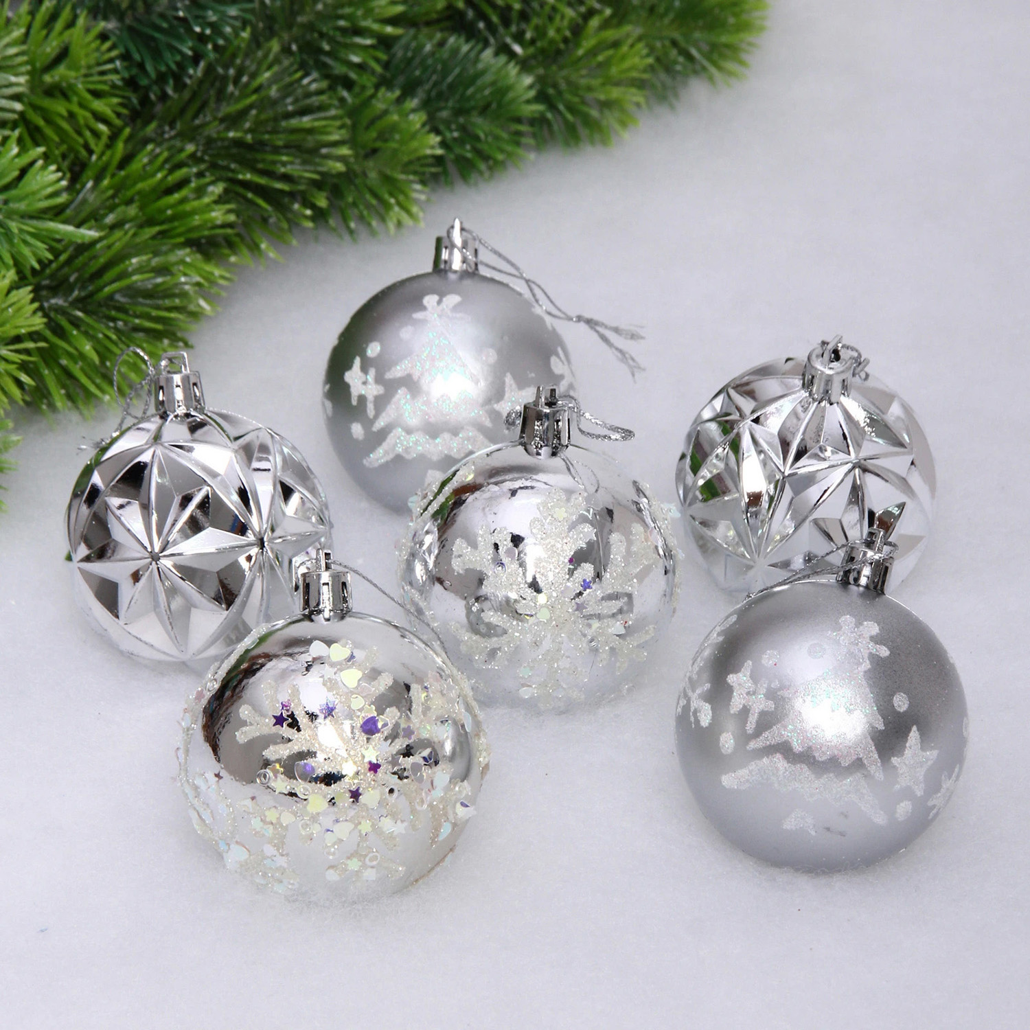 Набор шаров "Вивальди" 6 см (в наборе 6 шт), Серебро
