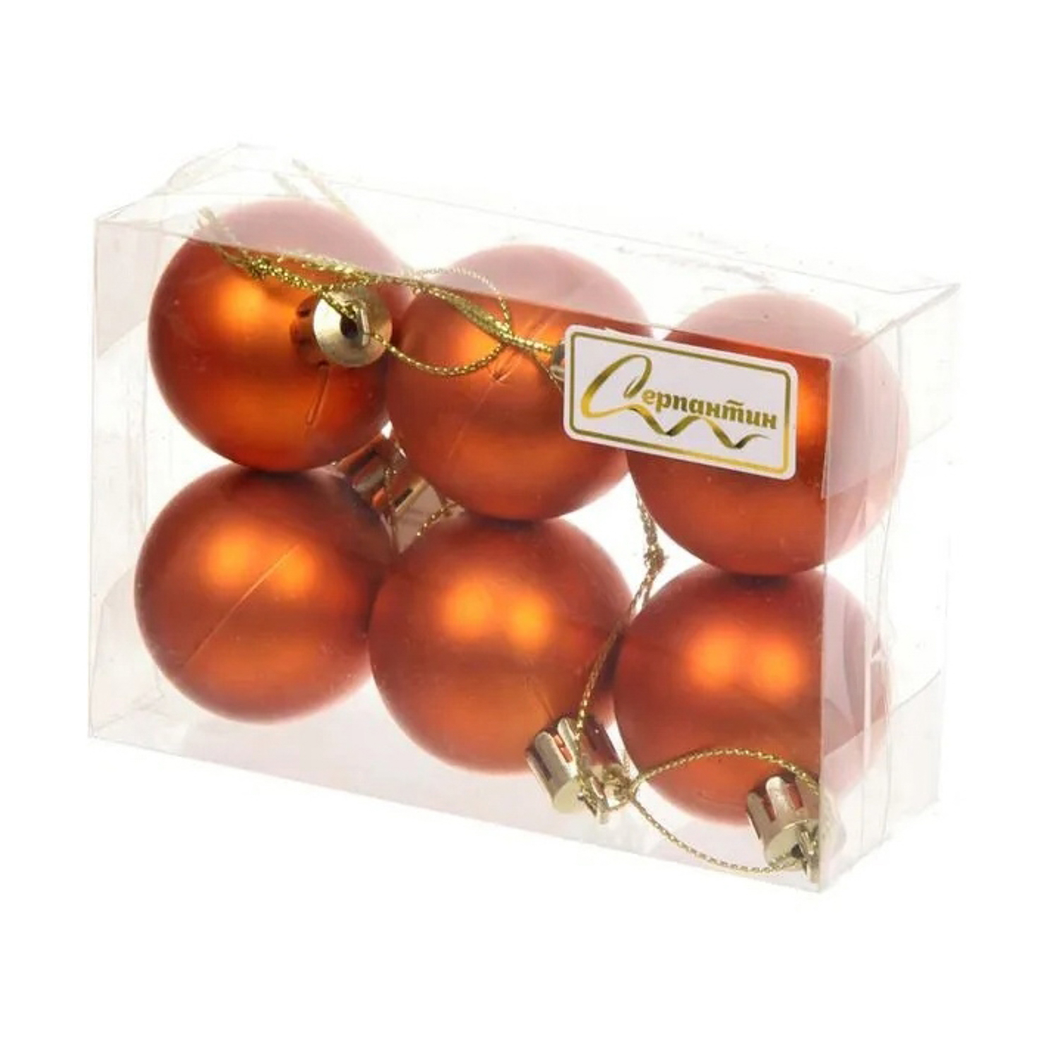 Новогодние шары 4 см (набор 6 шт) "Матовый", янтарь