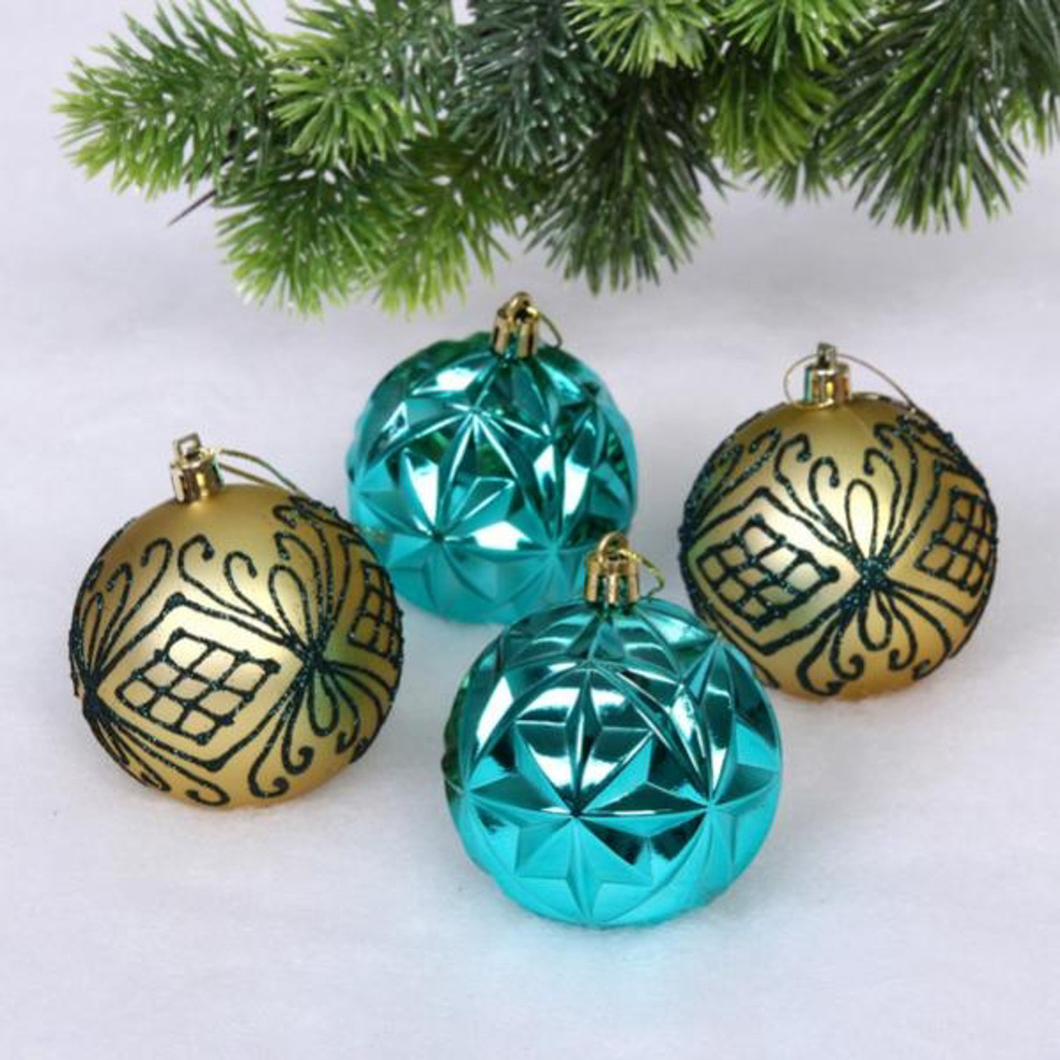Новогодние шары 7 см (набор 4 шт) "Симфония леса", лазурно-голубой/золото