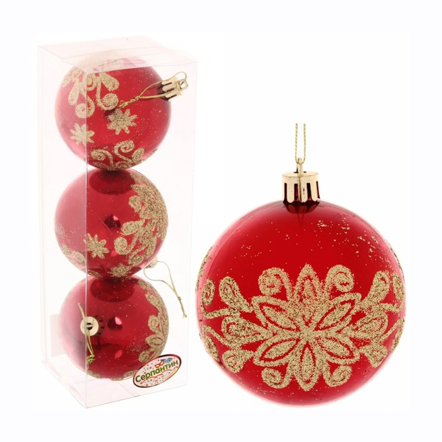 Новогодние шары 7см (набор 3 шт) "Павлиний хвост", красный