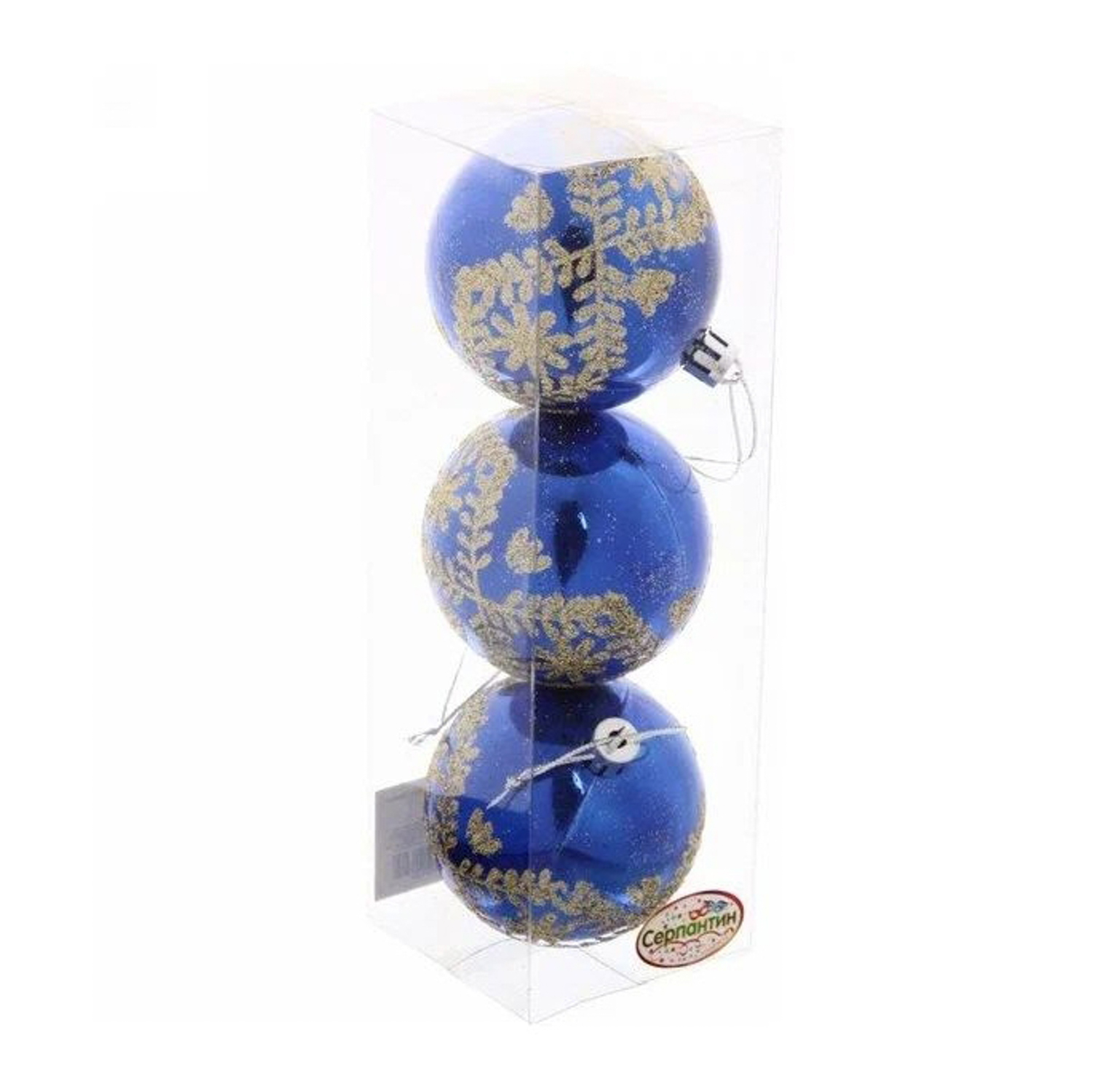 Новогодние шары 7см (набор 3шт) "Хвойные веточки", синий/золото