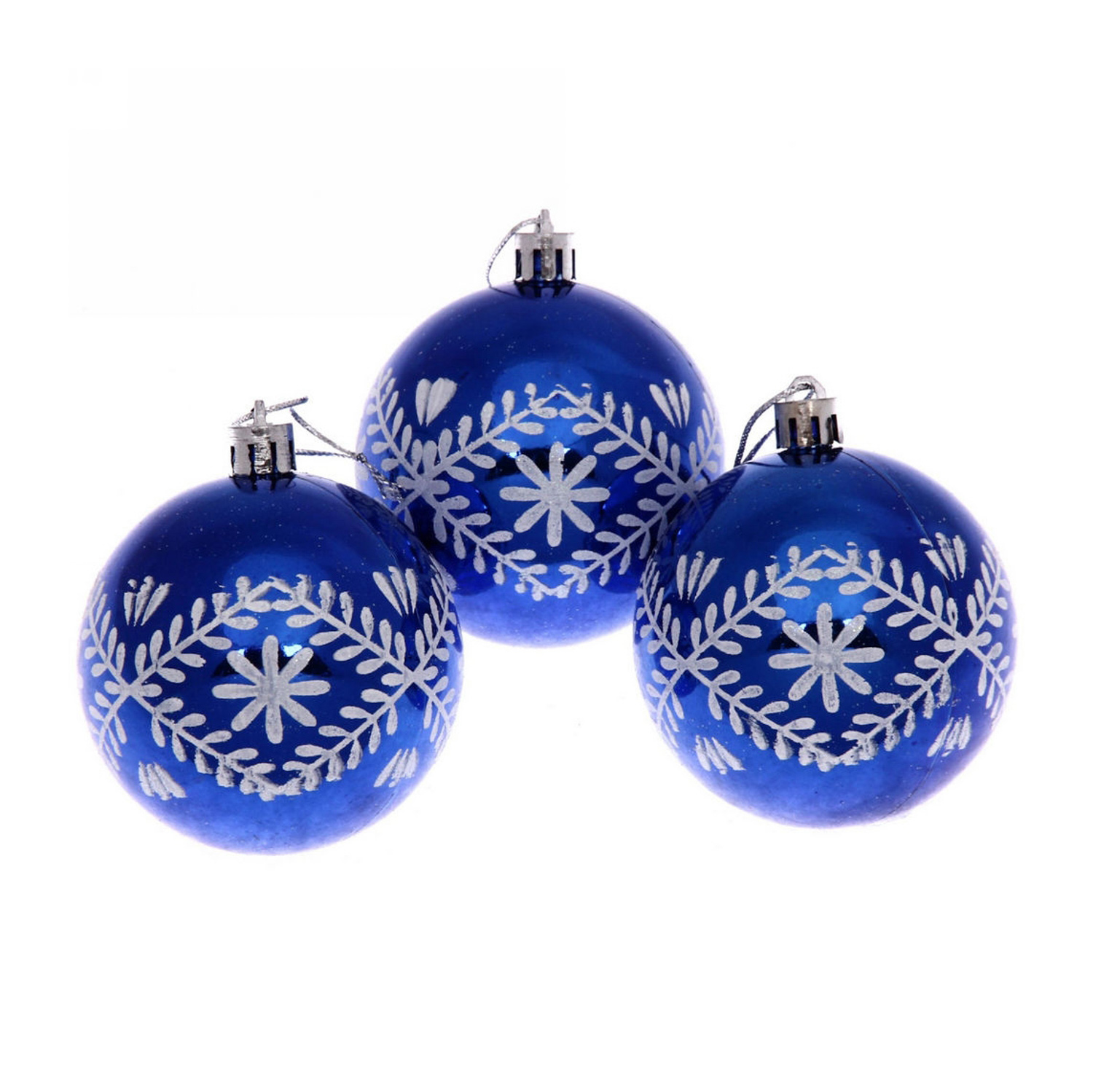Новогодние шары 7см (набор 3шт) "Хвойные веточки", синий