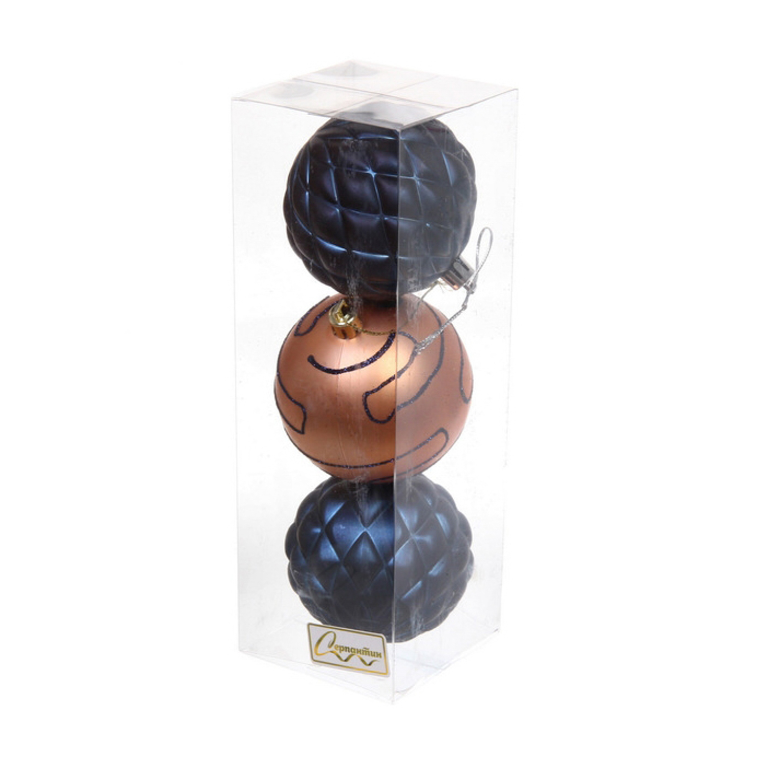 Новогодние шары 7см (набор 3шт) "Сказочная мечта", шампань/сапфир