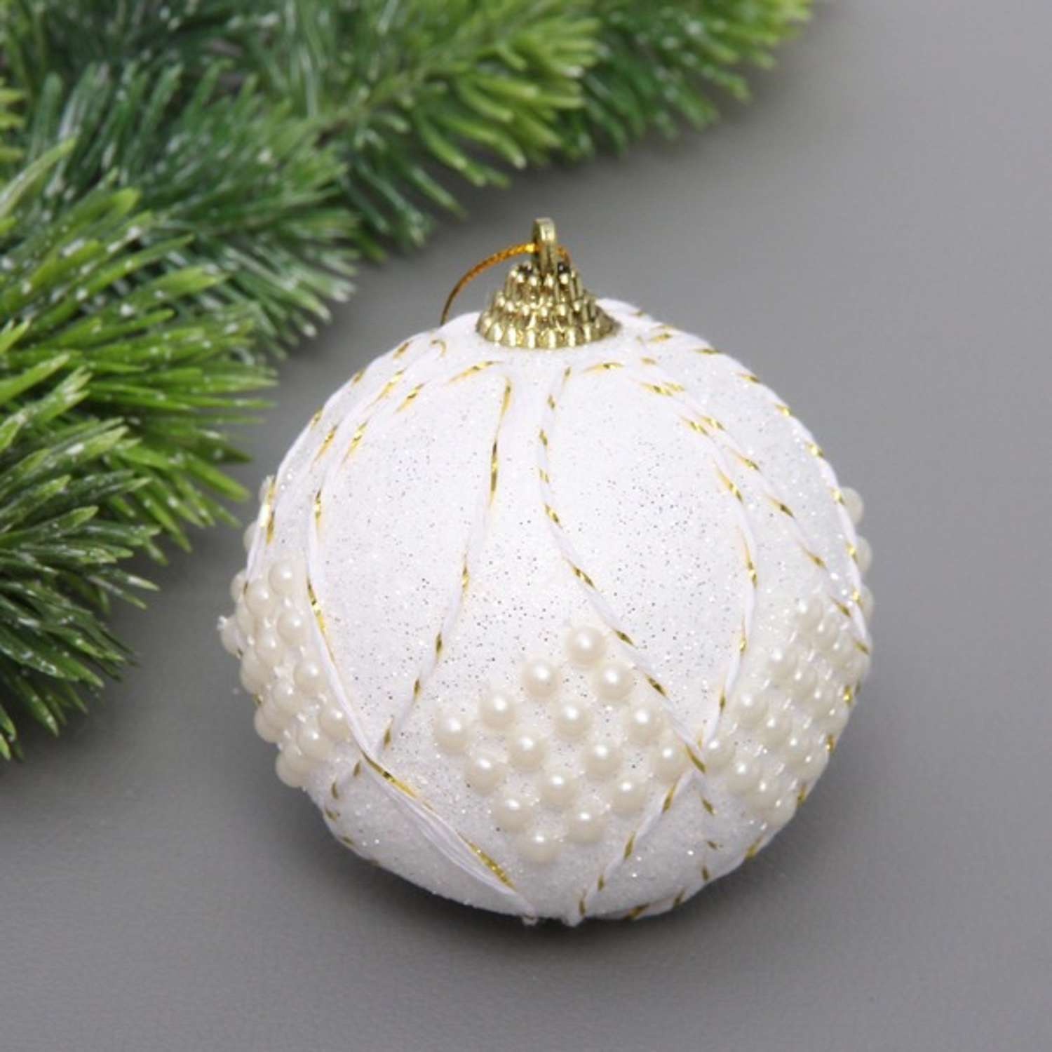 Новогодний шар "Снежный жемчуг" 8 см, Белый
