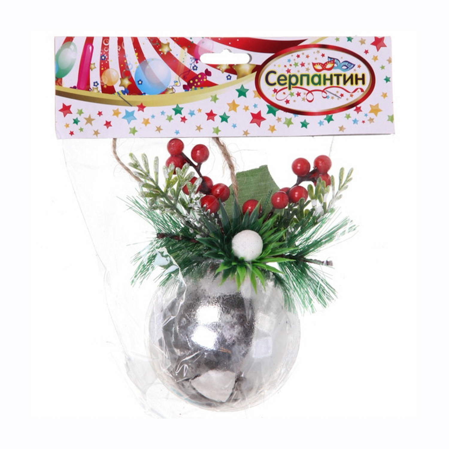 Новогодний шар "Лесное чудо" 8 см, Серебро
