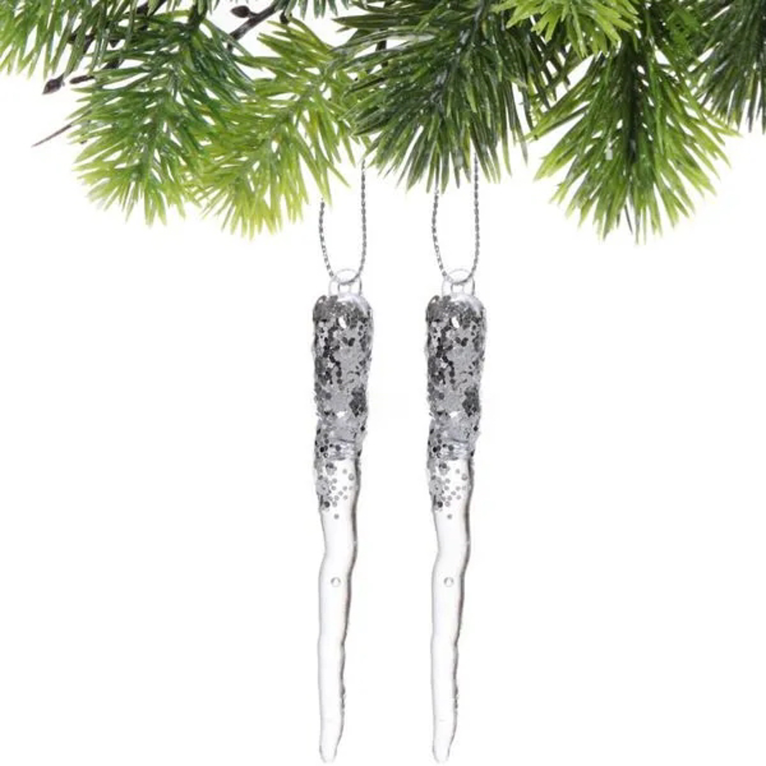 Подвеска "Морозная сосулька" 10 см (набор 2 шт), Серебро