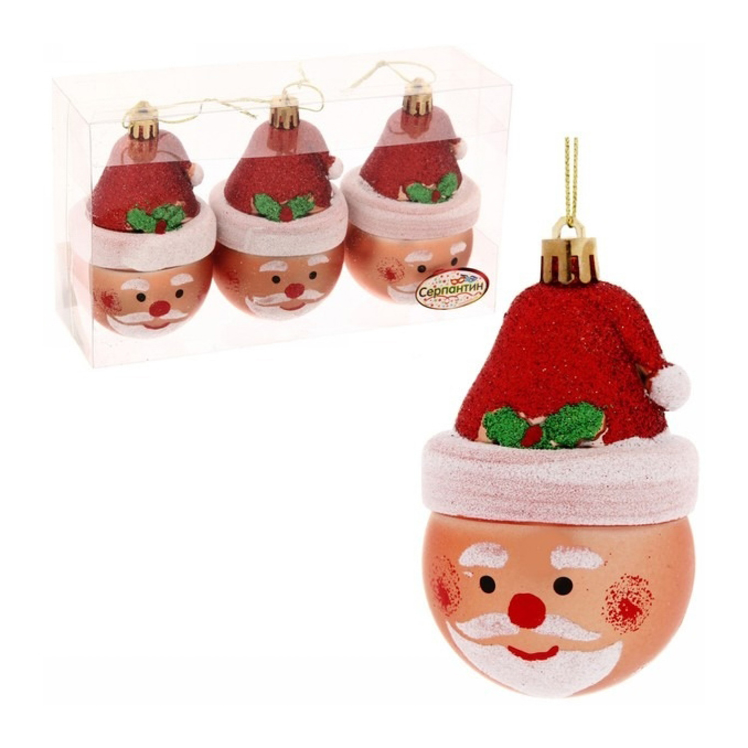 Ёлочные игрушки "Дед Мороз в колпаке" 10 см, (набор 3 шт)
