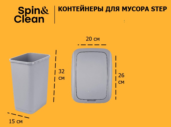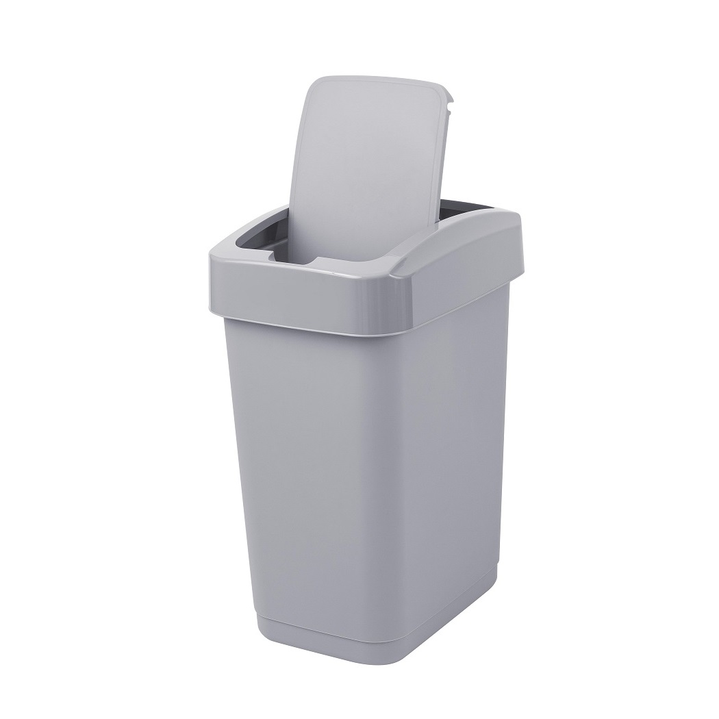 Контейнер д/мусора пластм. с откидной+"плавающей" крышкой 12л "Step" СерыйSC480611025 "Spin Clea"1/8