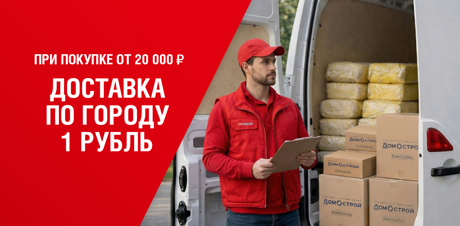 При совершении покупок на сумму от 20 000 руб. в розничном магазине ДомоСтрой и на сайте ishim.domostroy.shop доставка по городу всего за 1 рубль! Вы можете выбрать подходящую дату, доступную при покупке товаров, и в течение назначенного дня мы привезем товар.